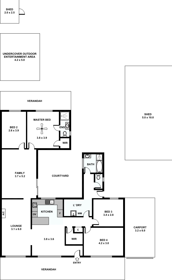 • Large shed at rear and carport UMR