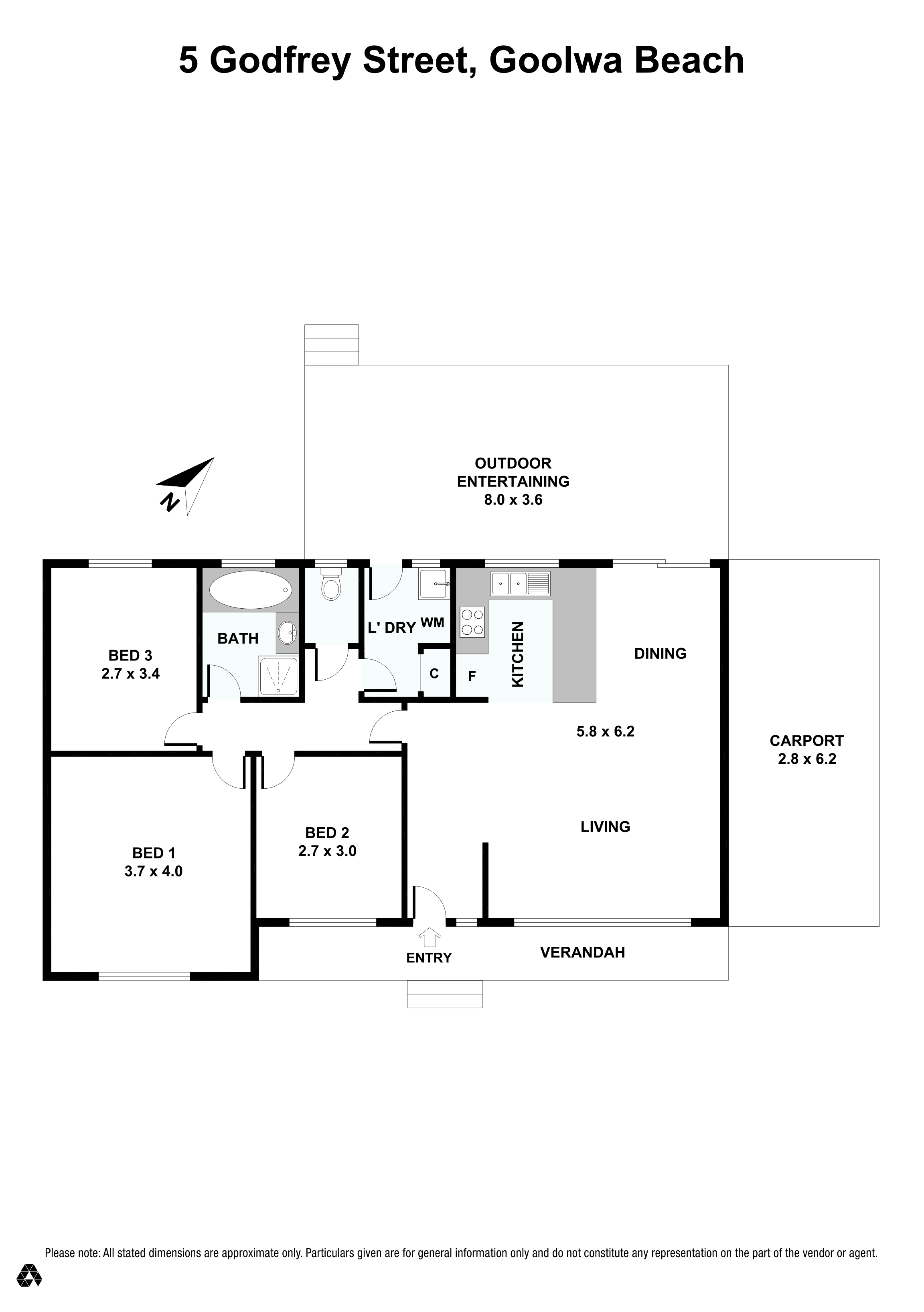 Neat and tidy 3 bedroom home with basic open plan kitchen which overlooks lounge & dining with split system A/C.
